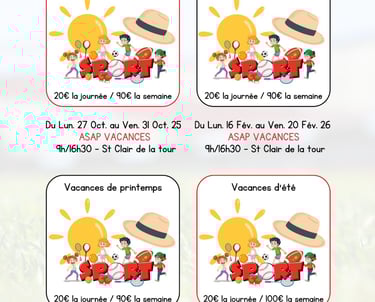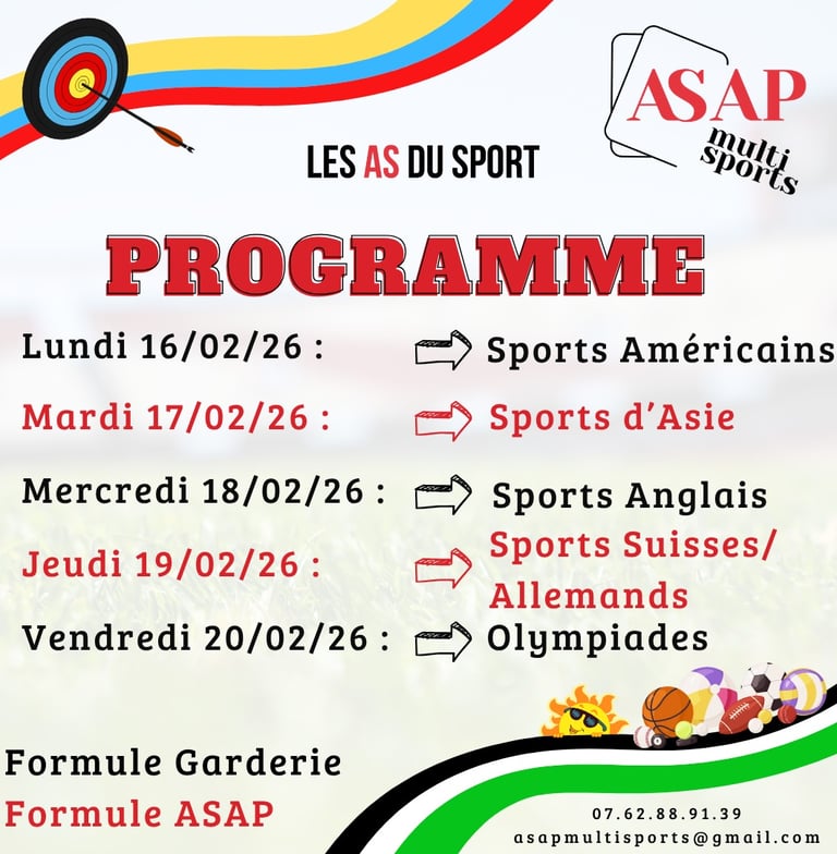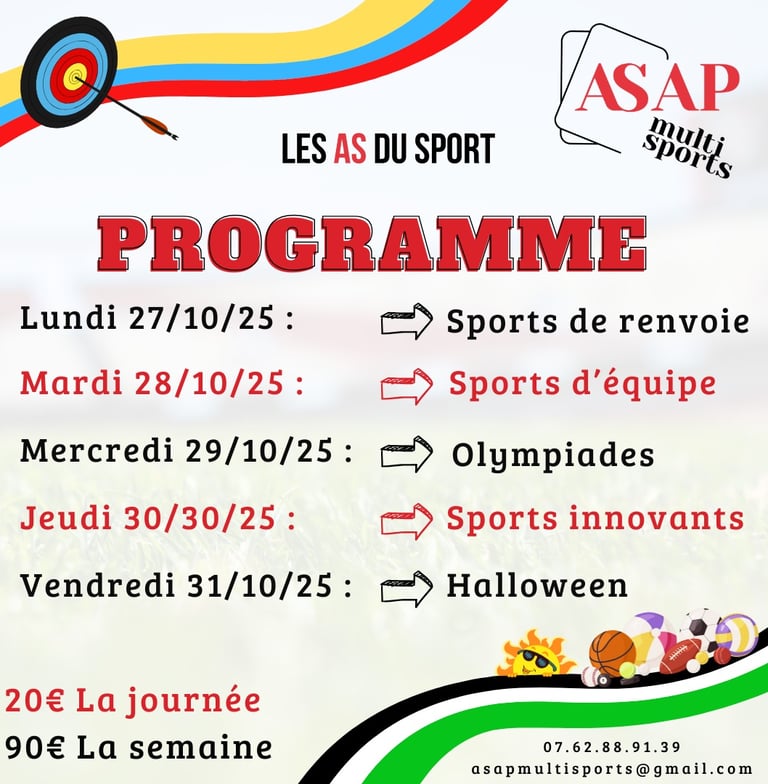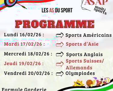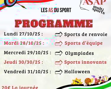 Une semaine d’activités multisports chaque 2ème semaine vacances scolaires.